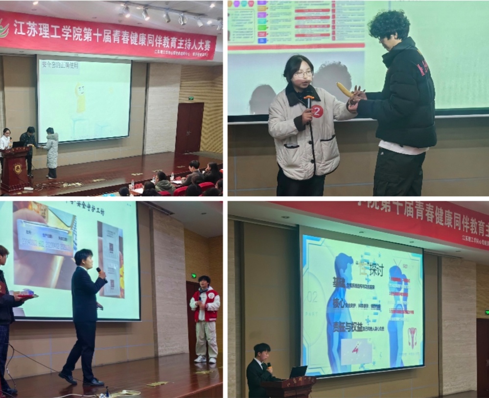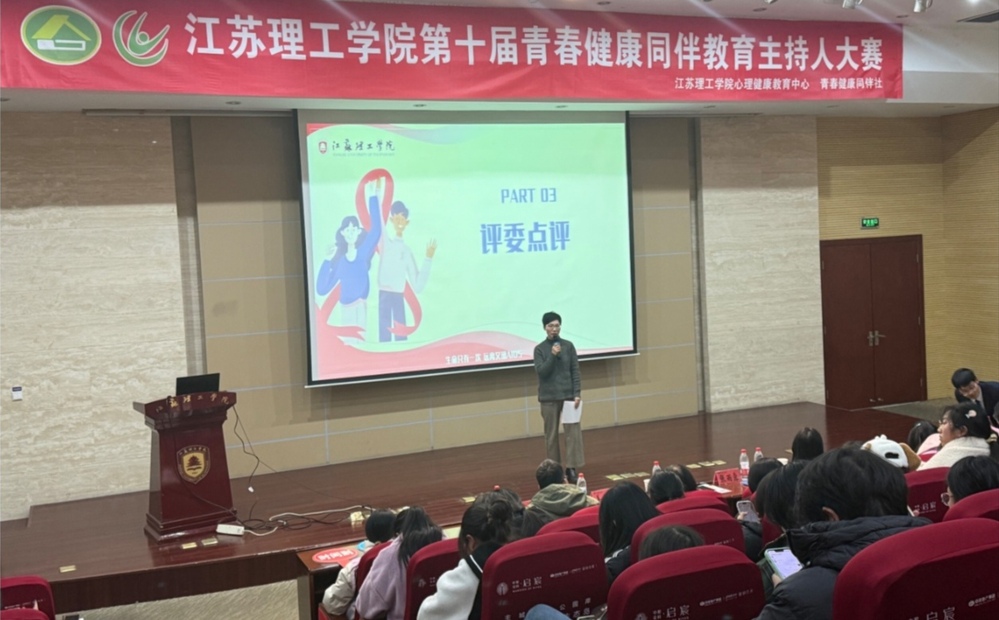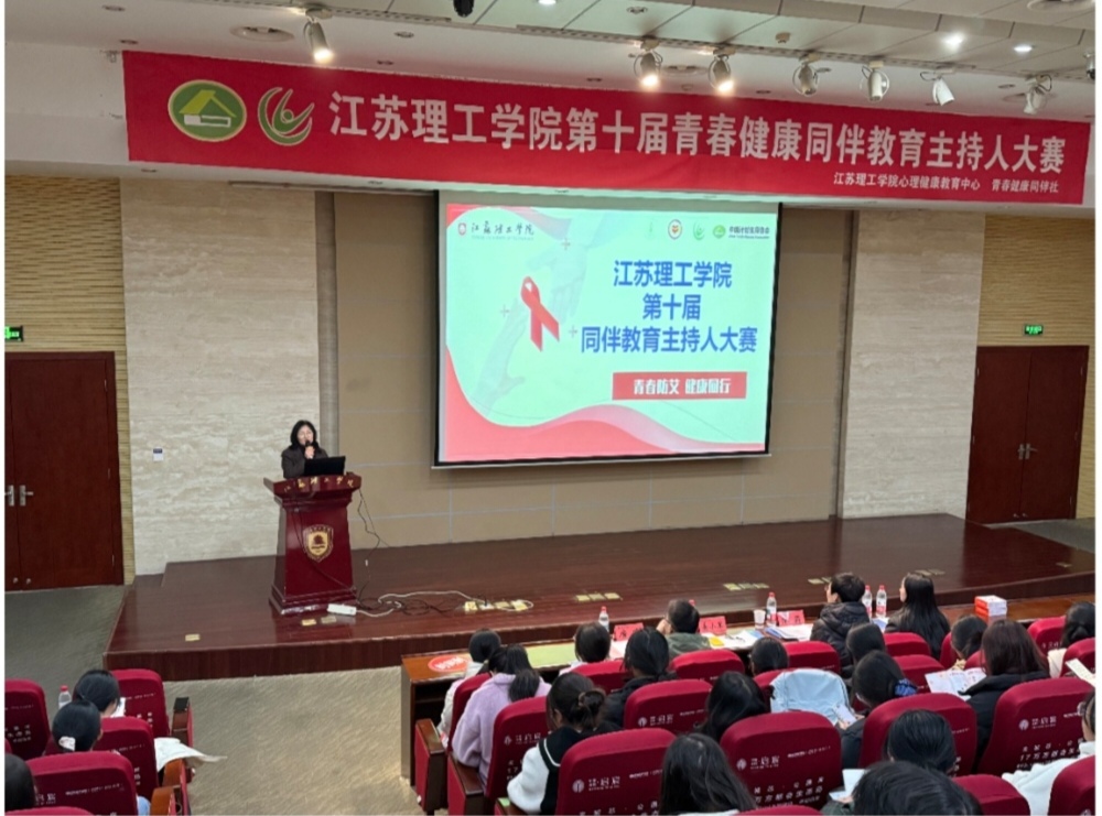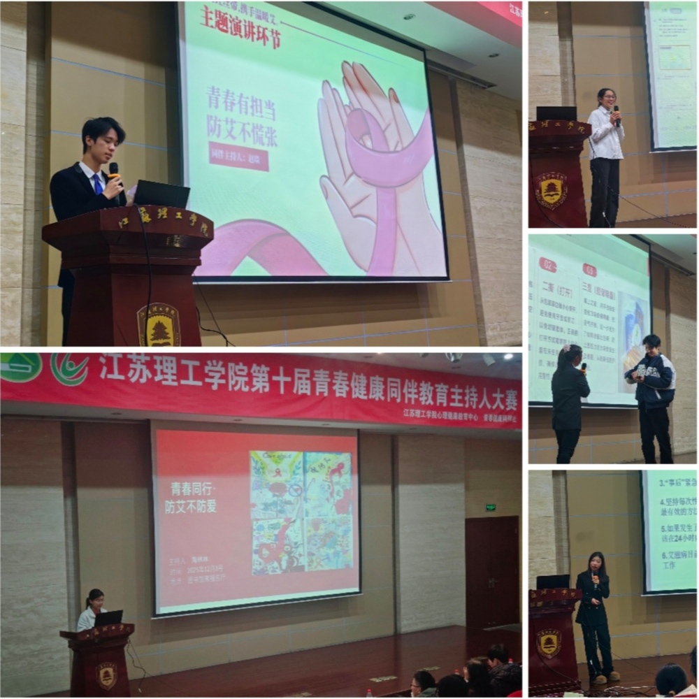 为深化青春健康教育内涵,培育青年学生健康素养与责任担当,12月4日,由江苏理工学院心理健康教育中心主办、青春健康同伴社承办的第十届同伴教育主持人大赛在图书馆南报告厅圆满落幕。本次大赛以“青春防艾 健康同行”为主题,吸引全校200余名学生踊跃报名,经前期选拔,10名来自不同学院的选手脱颖而出,在决赛舞台上用专业表达传递防艾理念,以青春风采诠释健康担当。